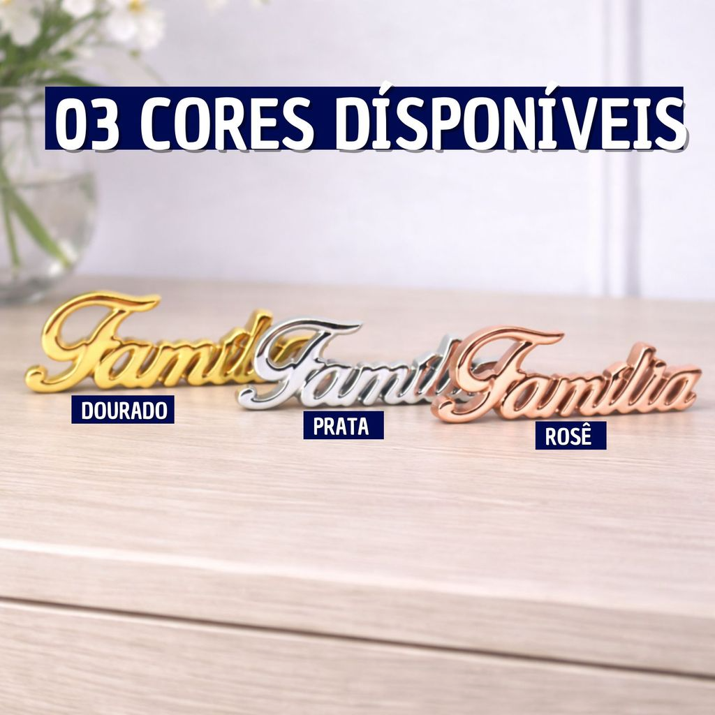 O ornamento decorativo com a palavra “Família” é uma peça elegante e cheia de significado, ideal para valorizar ambientes com aconchego, afeto e bom gosto. Com design moderno em escrita cursiva e acabamento metálico, transmite a importância dos laços familiares de forma delicada e sofisticada. Perfeito para compor salas, aparadores, estantes, escritórios ou quartos, trazendo charme e sentimento à decoração. Disponível nas cores dourado, prata e ouro rosa.