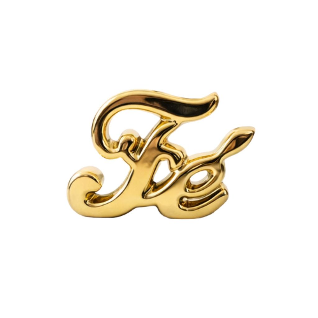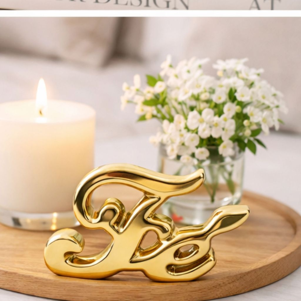 Escultura decorativa em formato da palavra “Fé” com acabamento dourado espelhado. Uma peça cheia de significado e estilo, ideal para compor ambientes com um toque de inspiração e sofisticação. Perfeita para sala, quarto, escritório, hall de entrada ou qualquer cantinho especial da casa, levando luz, espiritualidade e beleza à decoração.
