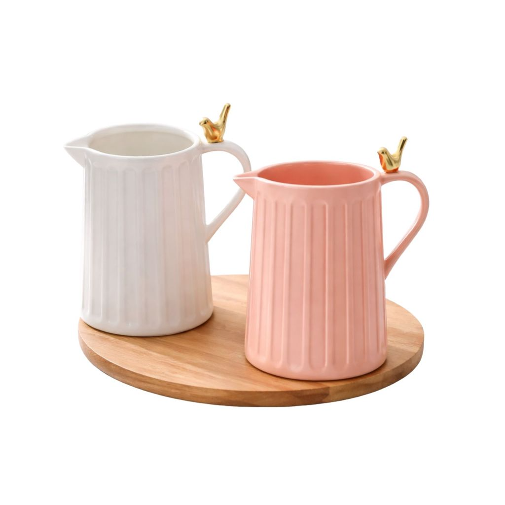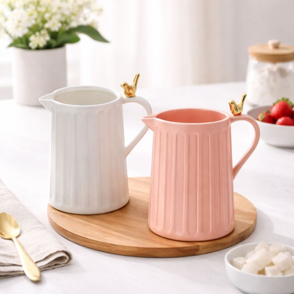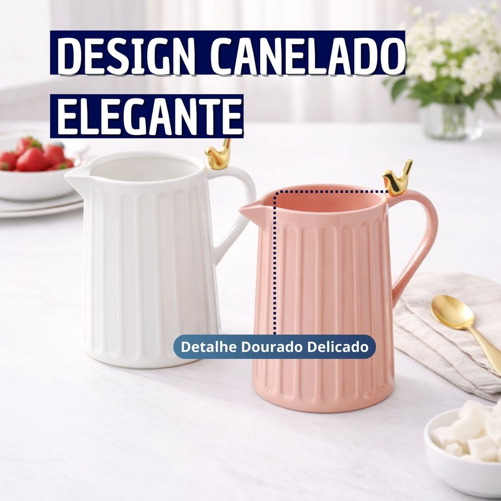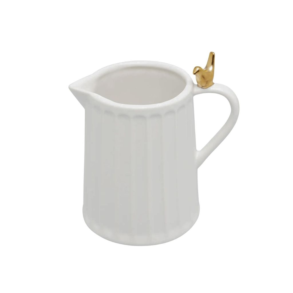 Leiteira de cerâmica com acabamento fosco e detalhe de passarinho dourado na alça. Uma peça charmosa, delicada e funcional para servir leite, café, chá, sucos ou caldas, trazendo elegância à mesa em qualquer ocasião. Ideal para compor cafés da manhã, brunch, lanches e mesas postas especiais com um toque de carinho e sofisticação. Vendida por unidade.